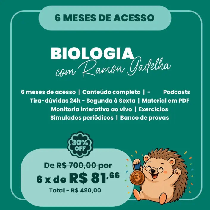 Aqui você irá aprender todos os conteúdos de biologia vivenciados nos vestibulares do país de forma leve, didática e prazerosa, com todo aprofundamento necessário. Fazer biologia com Ramon Gadelha é ver a vida por vários ângulos. É analisar cada um deles e extrair de cada vivência muitos aprendizados. É saber construir seu pensamento crítico, com independência, inteligência e autonomia. É seguir o curso da sua vida. Seja ele qual for. É sentir cada célula do seu corpo se agitar ao aprender o novo, ao experimentar. É uma verdadeira experiência de vida. O Curso de Biologia Ramon Gadelha é uma referência hoje por possibilitar aos estudantes uma visão completa da biologia e trazer ferramentas únicas e essenciais para garantir a sua aprendizagem.